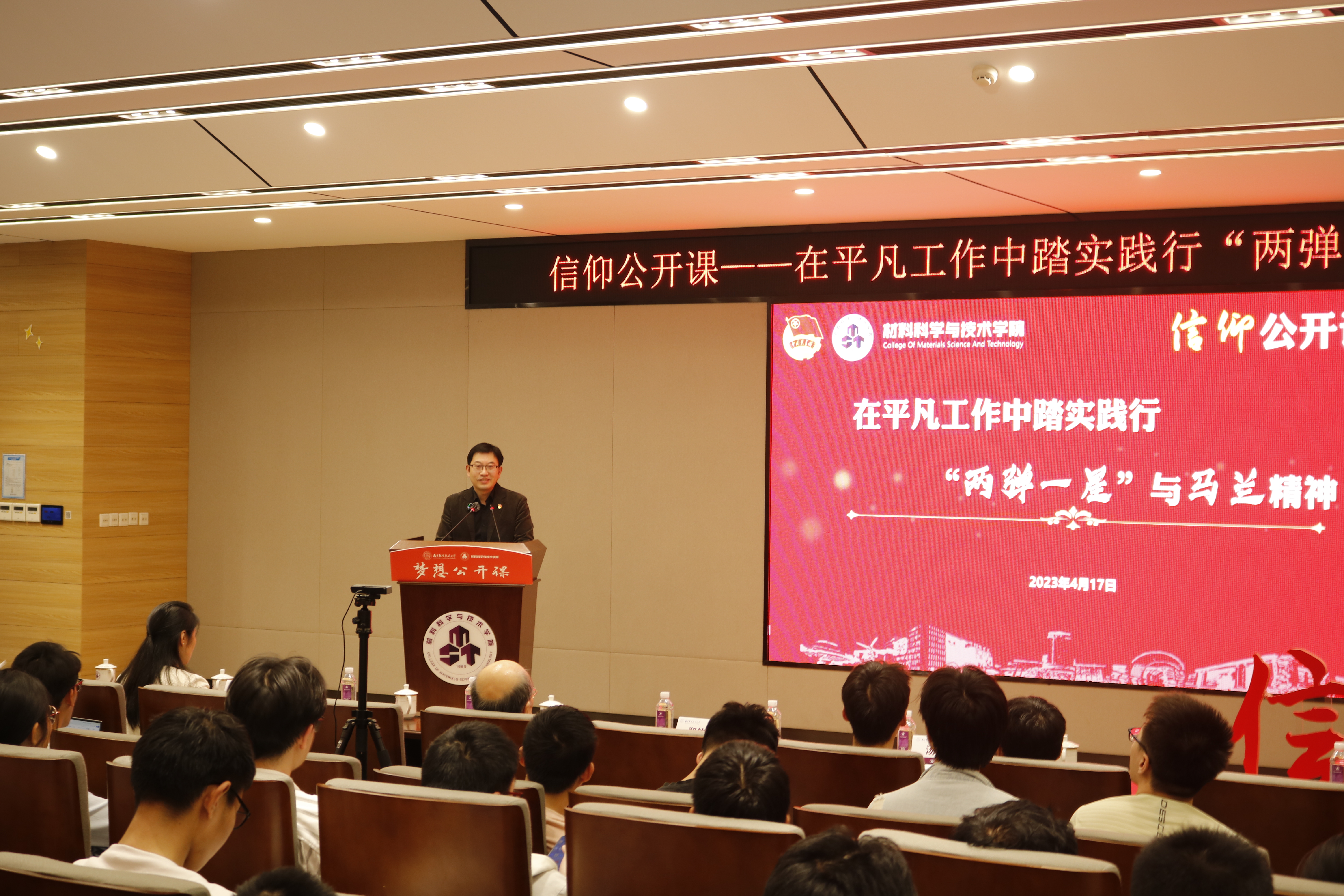4月17日,由太阳成tyc7111cc团委主办、tyc7111cc太阳成集团团委承办的“在平凡工作中踏实践行‘两弹一星’与马兰精神”信仰公开课在将军路校区材料学院报告厅举行。本次信仰公开课邀请到了我国核与辐射防护领域资深专家、清华大学客座教授郑钧正主讲,院党委书记石勇、副书记庄晓舒、副院长汤晓斌、核科学与技术系老师及180余名学生现场参与,新疆和硕第二小学师生线上参加,公开课由石勇主持。